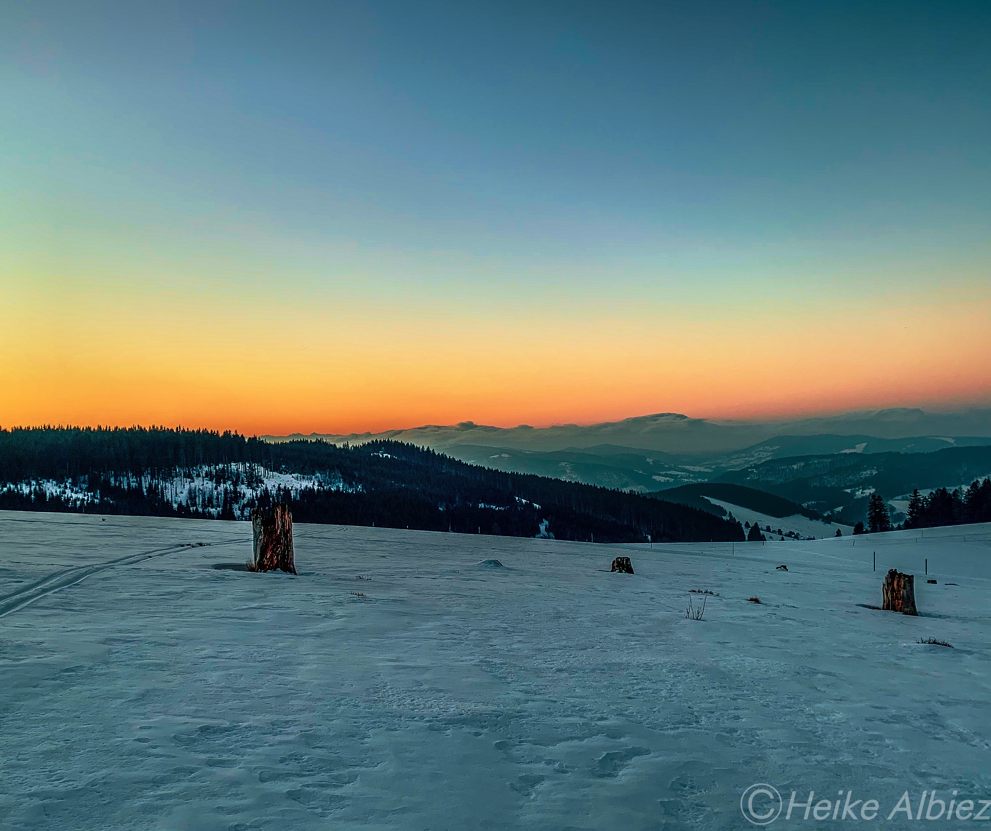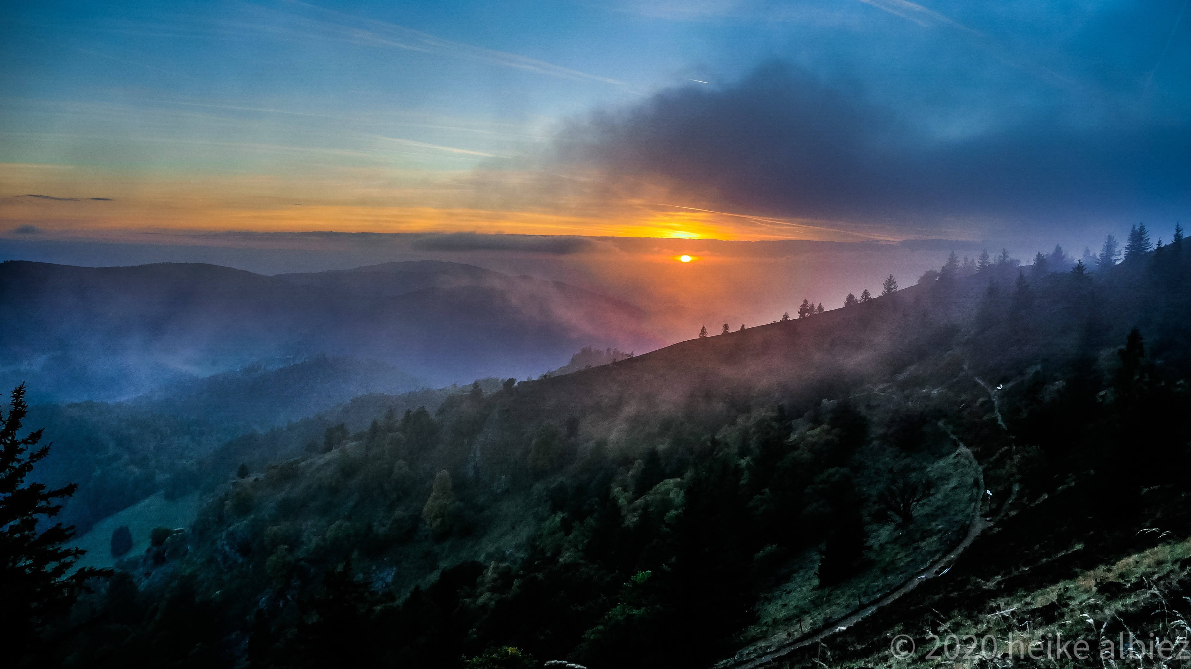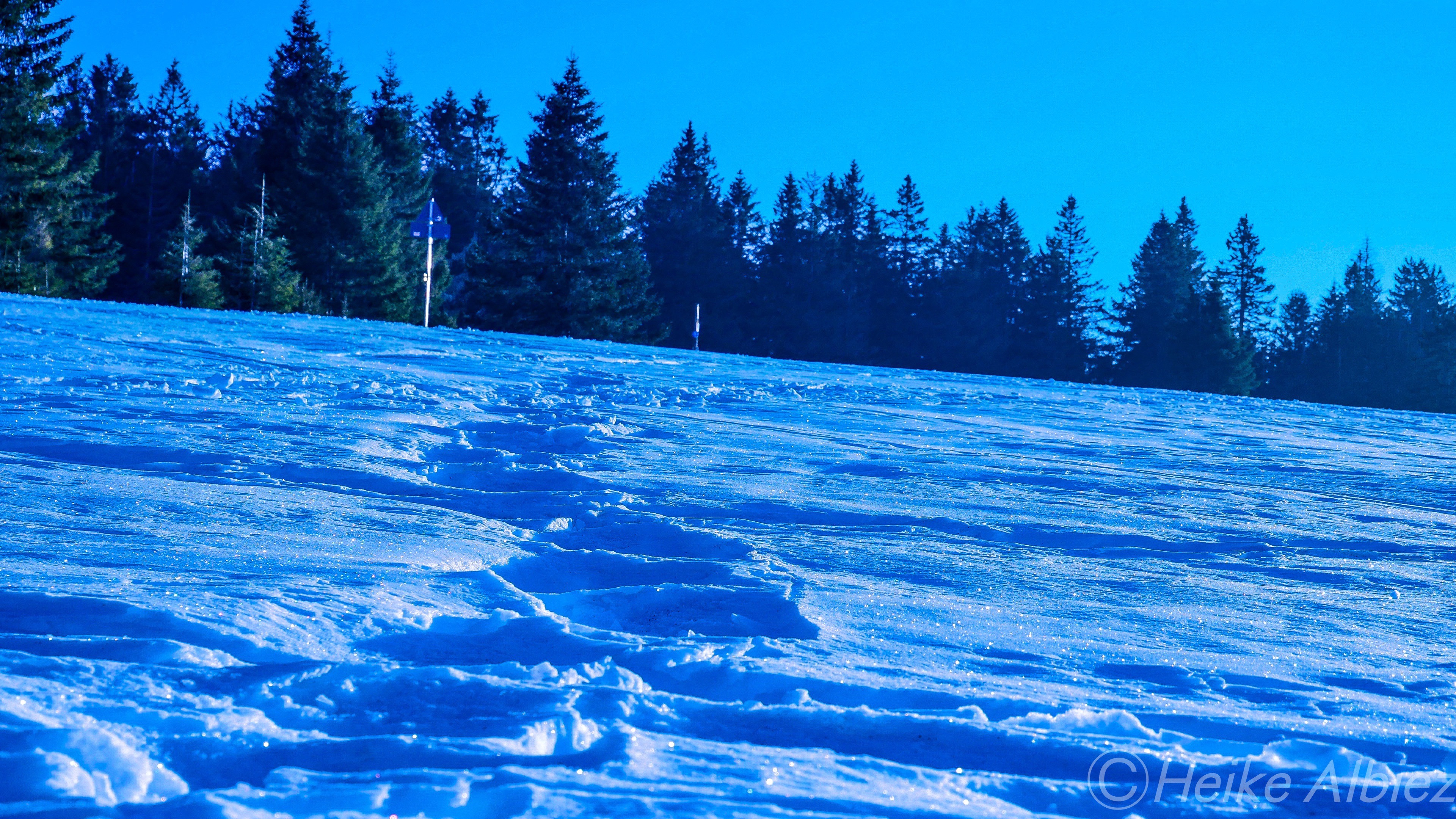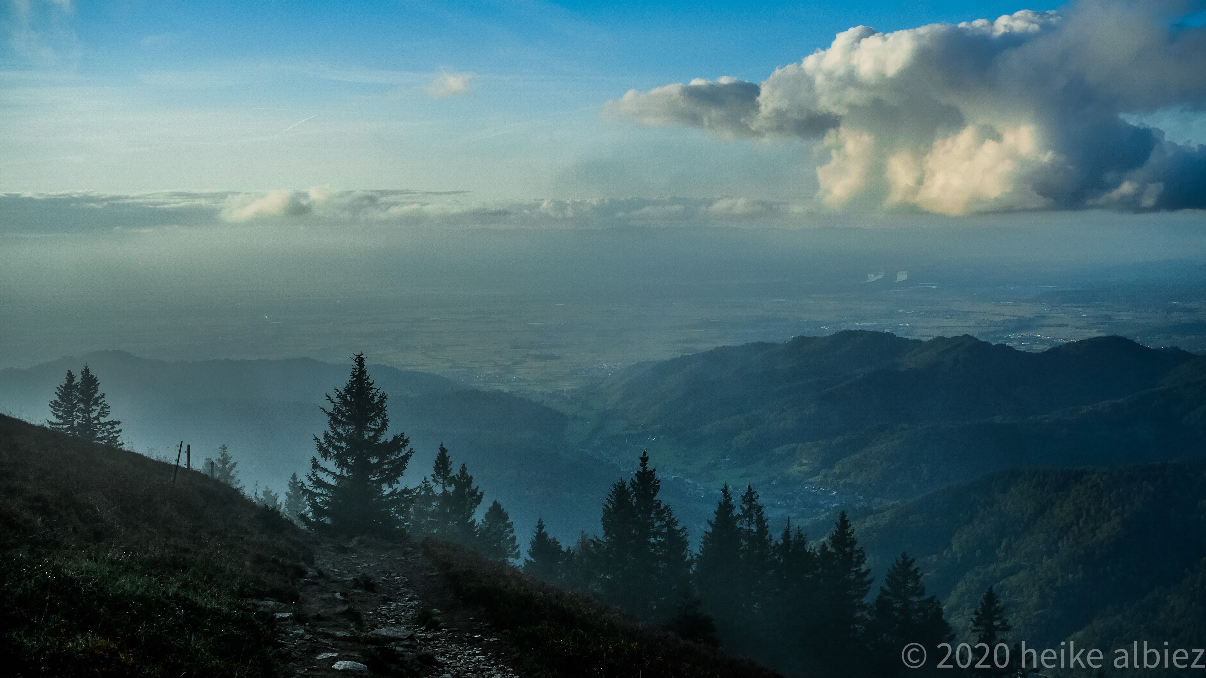 Gestärkt ging’s weiter der nun gelben Route folgend, zum heutigen Ziel, Rümmelesbühl! Ein wunderschöner Ausblick eröffnete sich mir und die Chance einen für mich bis dahin unscheinbaren Berg, mit ganz anderen Augen zu sehen. Es handelt sich hierbei um die Hohe Möhr ( 988,8 m NHN ) sie liegt hier im Landkreis Lörrach in der Nähe von Schopfheim, ein Steinwurf von unserem zu Hause entfernt und doch war ich noch nie zu ihr hinauf gewandert. War für mich ein einfacher Familien Berg für Wochenendausflüge, aber wie gesagt, meine Einstellung dazu hat sich geändert. Ich werde eine Tour auf die Hohe Möhr einplanen und ihr mir mittlerweile interessantes Relief erkunden. Nun aber weiter, schließlich möchte ich ja euch nicht den schönsten Anblick, diesen Tages, zu lange vorenthalten.