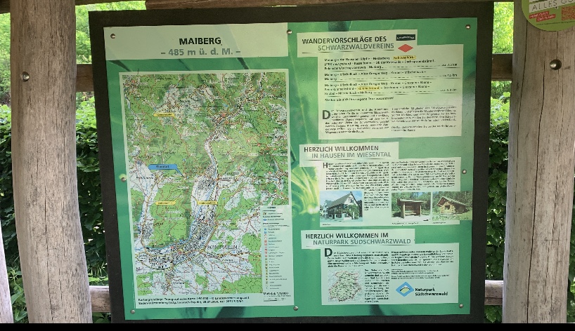 Ich begab mich an einem herrlichen frühsommerlichen Dienstag Morgen auf eine kleine Tour, hier in der näheren Umgebung. Da ich gegen Mittag wieder zu Hause sein wollte, um mit meinem Mann, der leider arbeiten musste, den Nachmittag zu verbringen, ging’s recht zeitig los. Schon vor 8.00 Uhr stand ich auf dem Wanderparkplatz, den ich mir für den Tag ausgesucht hatte. Er heißt „ Maiberg“ und befindet sich zwischen Enkenstein und Hausen i. Wiesental, die Tour 3 mit 9 km sollte es sein und schon setzten sich meine Füße in Bewegung.
